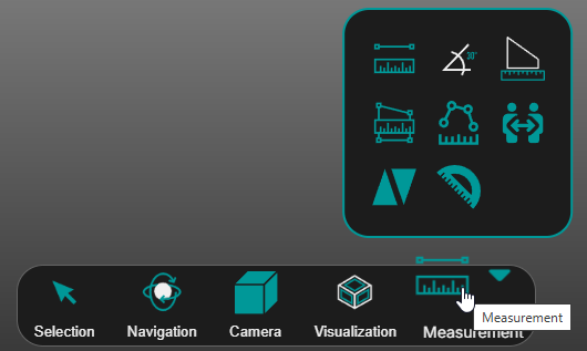 It provides quick access to tools used for navigation, selection, visualization, and measurement.