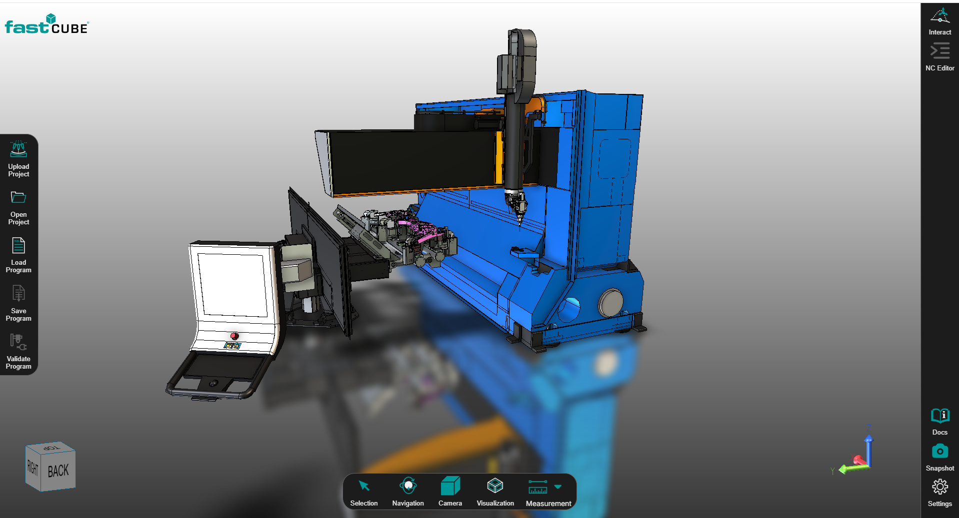 Once loaded, the project can be inspected and analyzed using the available tools such as the 3D Viewer, NC Editor, and Interact Panel.