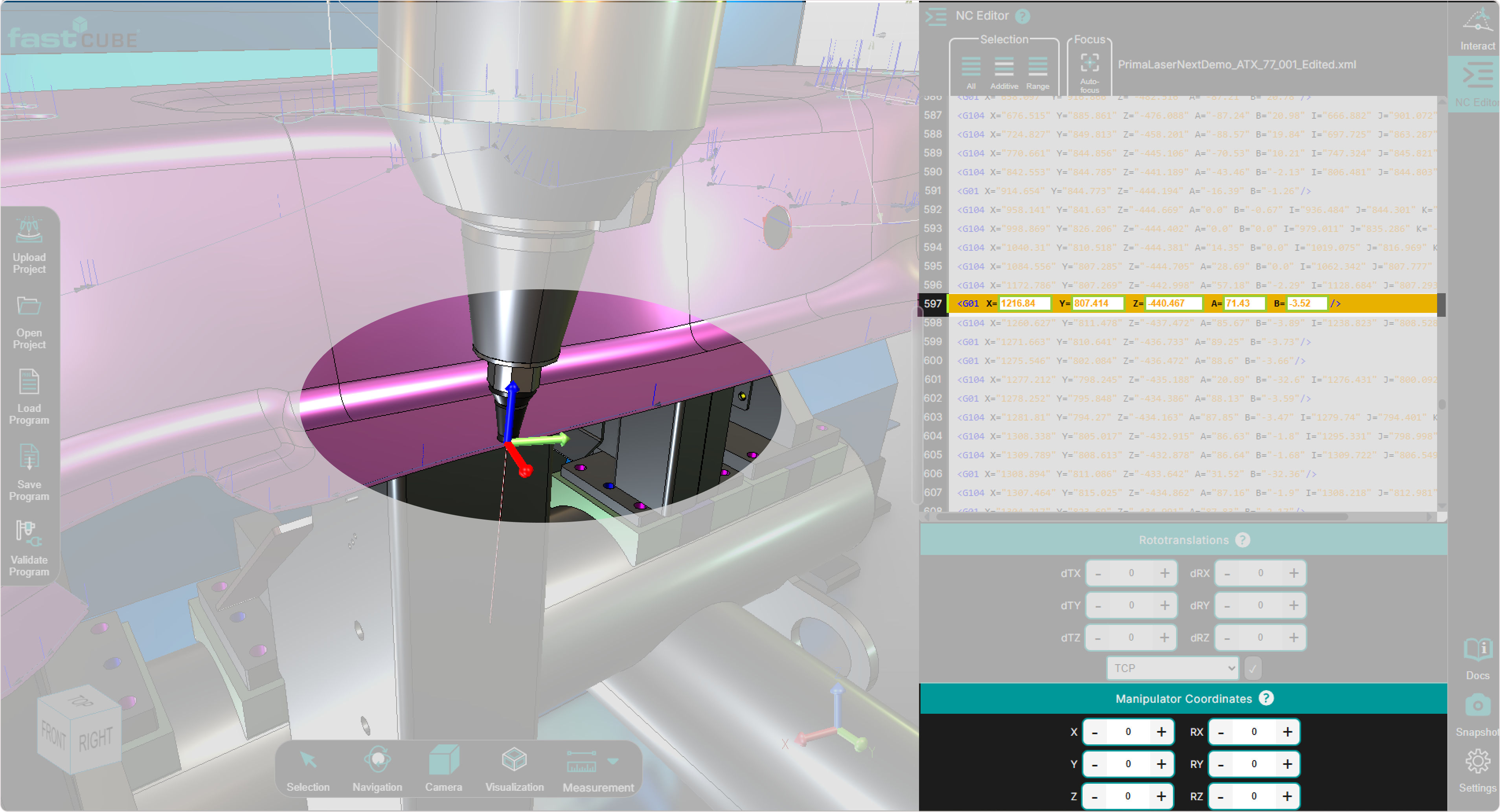 - The manipulator is especially useful for analyzing difficult tool positions, adjusting orientation, and validating the trajectory directly in the 3D environment.