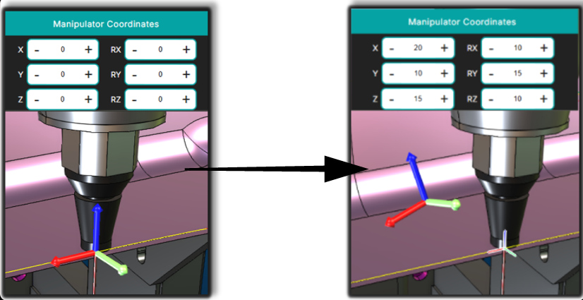 - To reset the Manipulator Panel values, simply select another point in the NC Editor or the 3D Viewer.