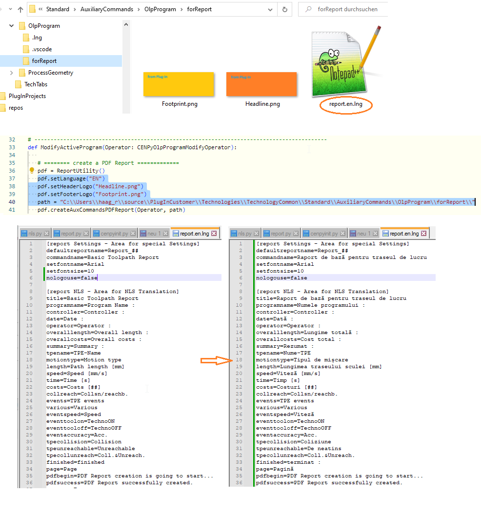 A desired language file (report.[en,de,fr,cn,jp].lng) for modifying the translation and / or setting can be added to the plugin.